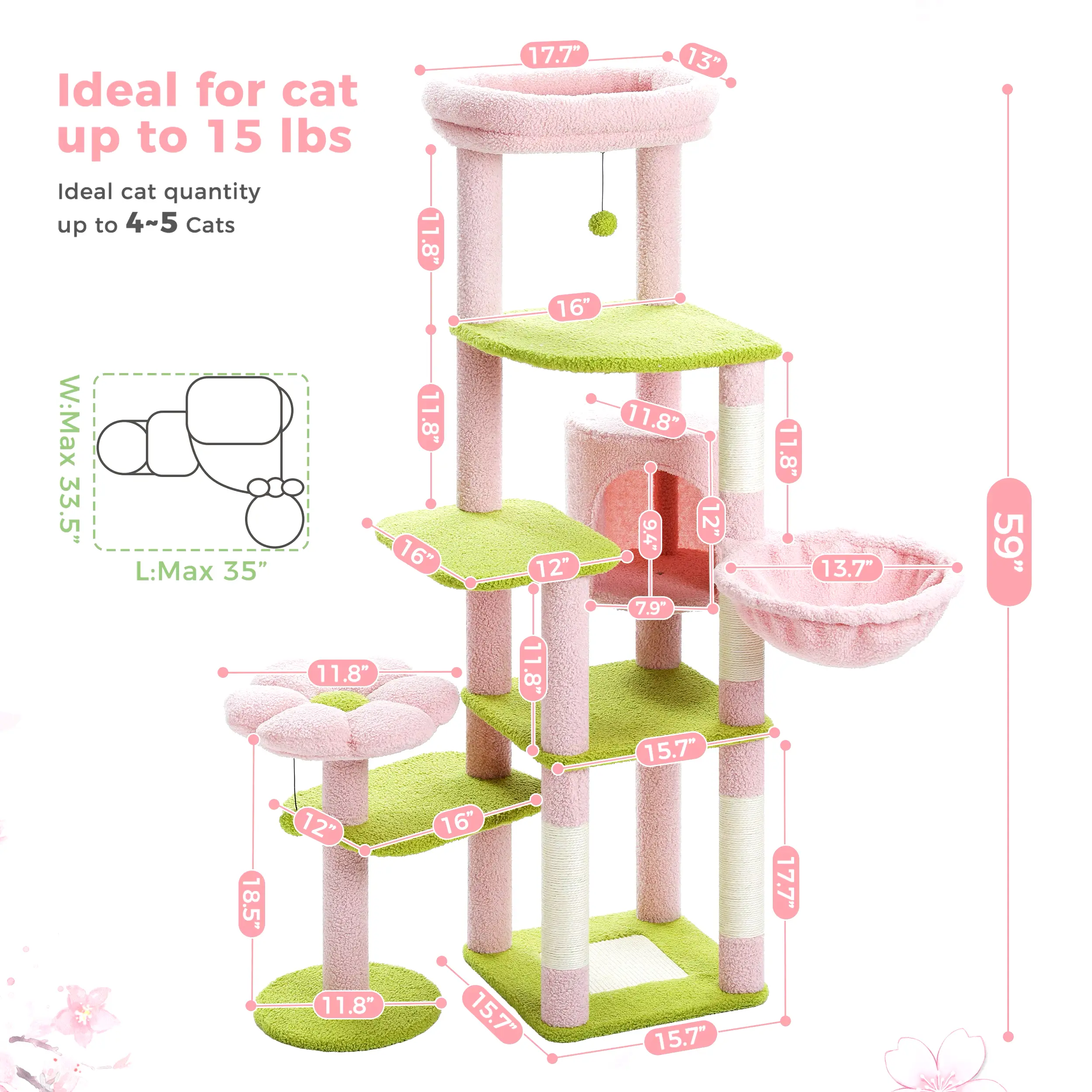 Mit einer Höhe von 150 cm überzeugt dieser durchdachte Multi-Layer-Kratzbaum, der speziell für größere Katzen oder Haushalte mit mehreren Fellnasen entwickelt wurde. Ausreichend Platz bieten die großzügigen Plattformen – ideal zum Klettern, Kratzen und Entspannen. Die verschiedenen Ebenen wurden so gestaltet, dass auf jeder Ebene genügend Platz zu finden ist und dieser Kratzbaum dadurch für mehrere Katzen geeignet ist.